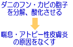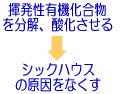 分解除去して水と二酸化炭素にして空気中に戻し無害にする。